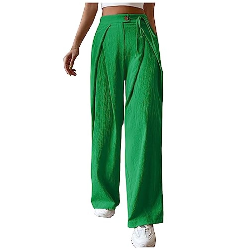 Included are summer trousers, capris, cropped and wide-leg designs, as well as trousers made from materials such as linen, cotton, velvet, and fleece for seasonal versatility. Styles range from casual joggers and sweatpants to dress and business casual trousers, including high-waisted and elasticated waist options for comfort and fit.