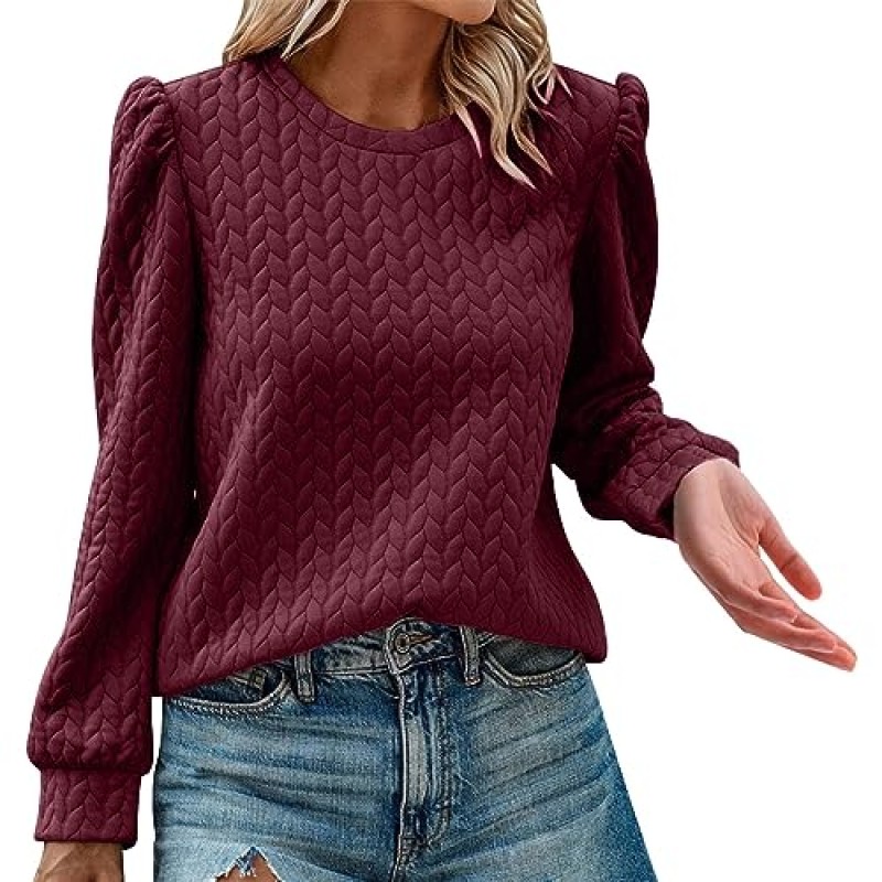 This Angxiwan women's pullover sweatshirt features a crewneck design and puff sleeves, combining classic style with contemporary trends. Made for casual wear, it offers a comfortable fit appropriate for various everyday activities.