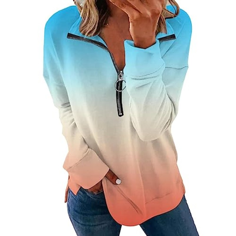 Angxiwan Women’s Winter Long Sleeve Tie Dye Printed Sweatshirt with Side Zipper Split