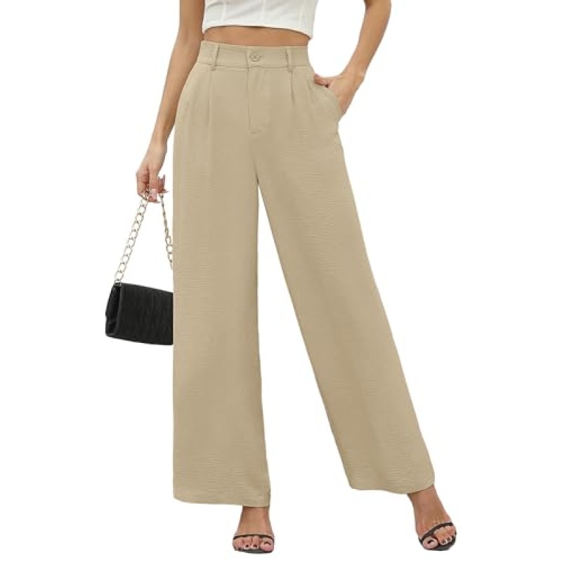 BEIGAI Women's High-Waisted Wide Leg Trousers in Light Apricot