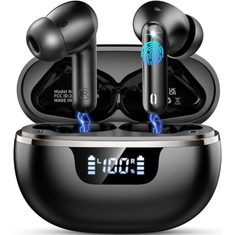 Immerse yourself in the world of music with the Bluetooth 5.4 Earbuds featuring Hi-Fi Deep Bass Stereo and ENC Noise Cancelling. Enjoy 40 hours of playtime, comfortable wear, and IP7 waterproof protection for sports and travel.