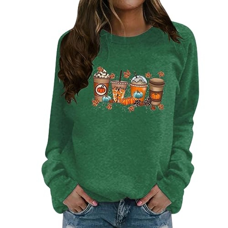 Comfy Oversized Sweatshirt Women's Casual Printed Long Sleeve Sweater Green XXXL