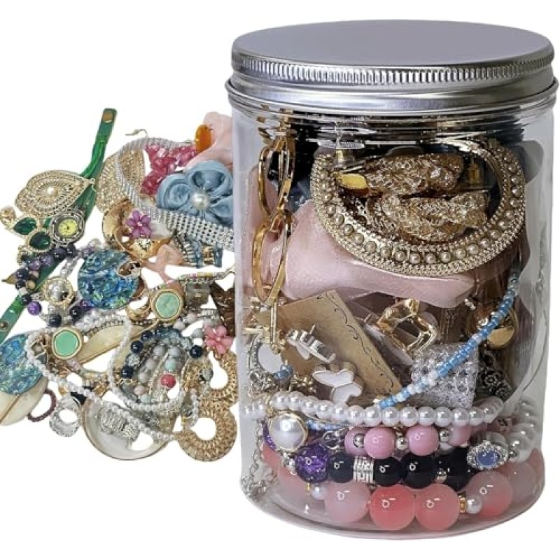 The Gudong Vintage Mystery Jewelry Jar offers a collection of 40-45 assorted pieces including necklaces, earrings, and rings. The styles cover a broad range from bohemian to elegant, suitable for daily use or special events.