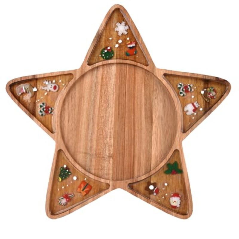 Guowall Wooden Christmas Serving Tray with Acacia and Epoxy Resin Star Design