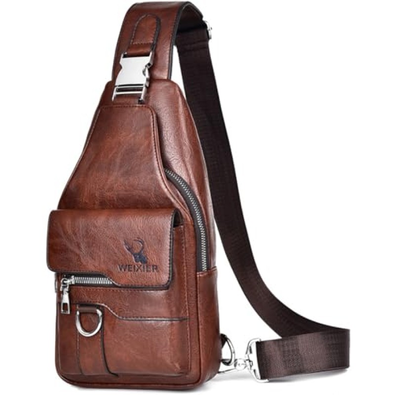 Hjkiopc Leather Sling Bag with Adjustable Strap