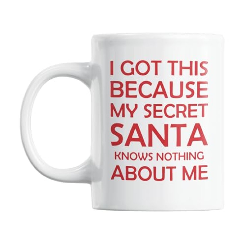 This ceramic mug features an "I Got This Secret Santa" design suitable for both men and women. It has an 11oz capacity, making it practical for coffee, tea, or hot chocolate. The mug is made to order, ensuring individual attention in its creation rather than mass production.