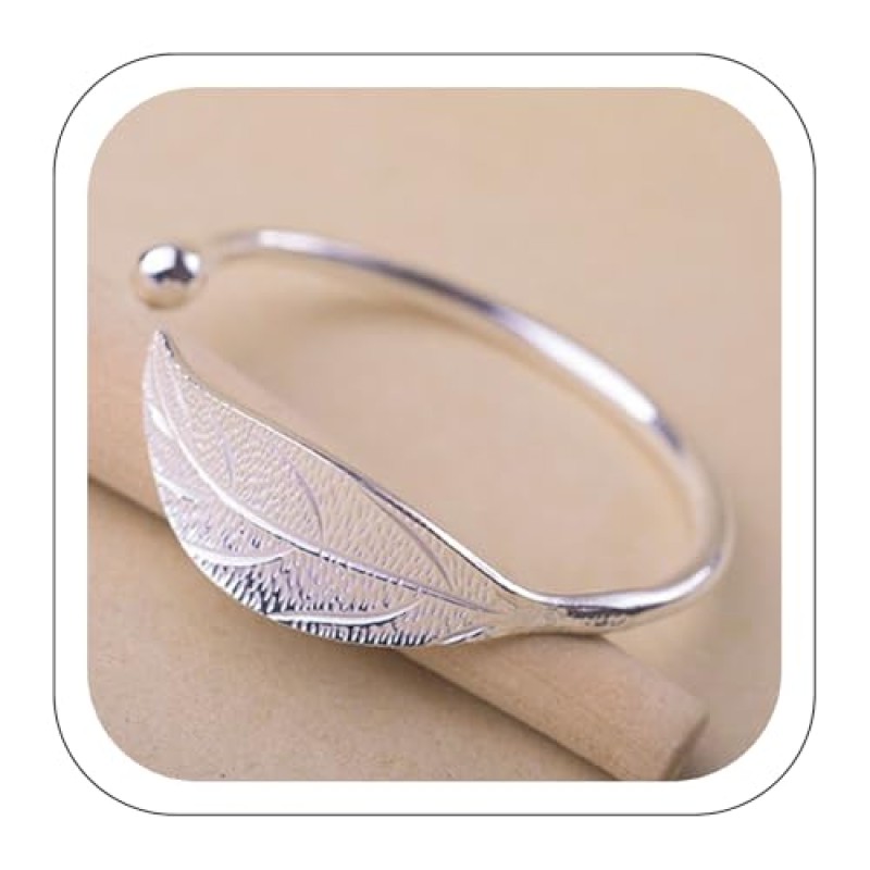 Jmwedia Adjustable Silver Charm Bracelet with Leaf Design
