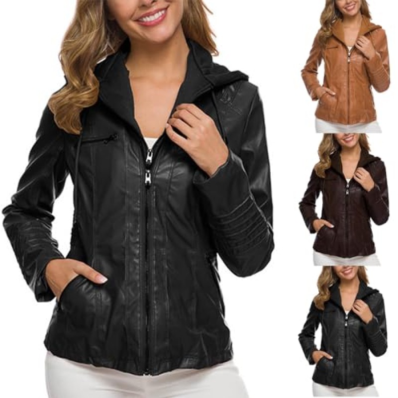 Designed to suit various body shapes, including plus sizes, this jacket adds a versatile addition to any wardrobe. Its faux leather finish offers easy maintenance compared to real leather, while maintaining a polished and stylish appearance. The jacket is available in a range of sizes, catering to different fits.