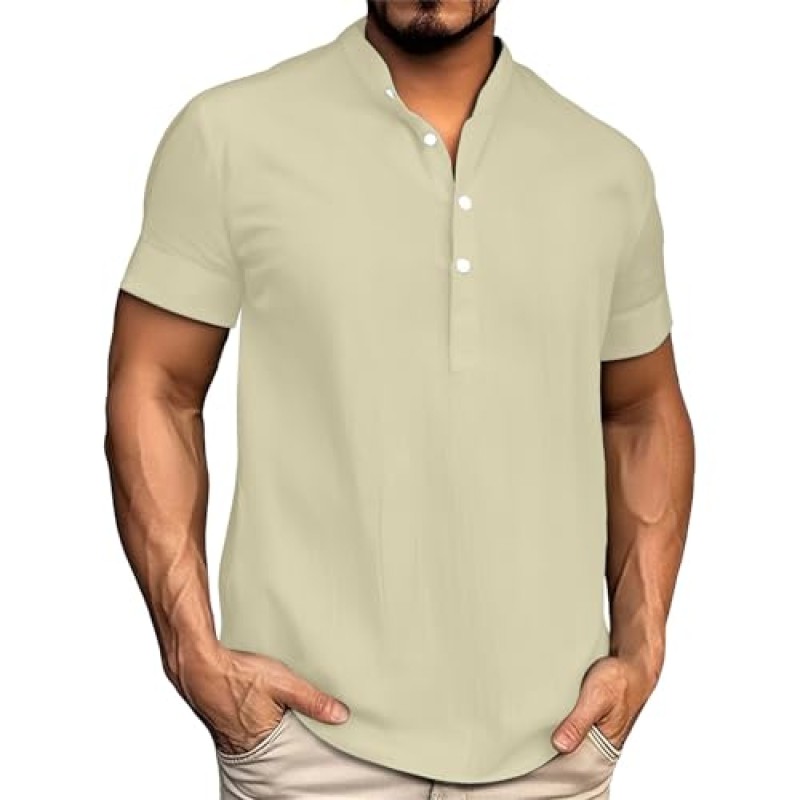 Men's V-Neck Breathable T-Shirt with Button Detail