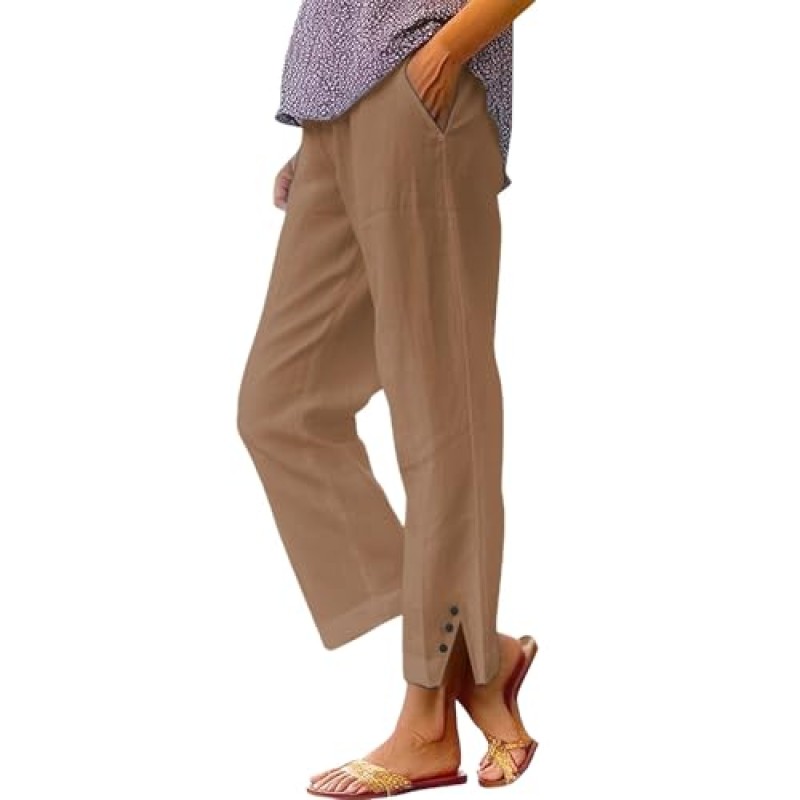 Nuaoxyeu Women's Linen Wide Leg Trousers with Elasticated Waist