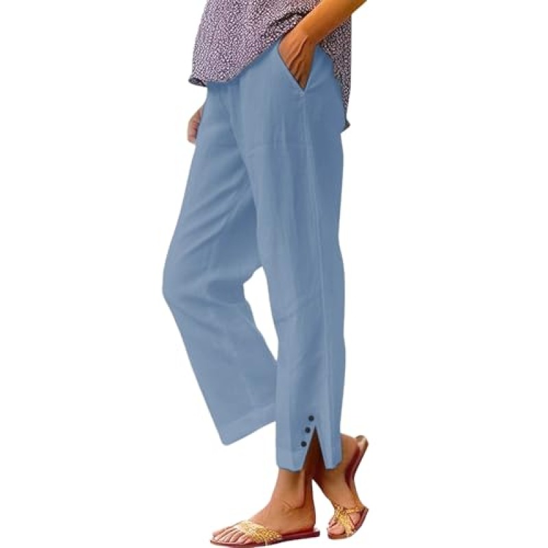 Nuaoxyeu Women's Linen Wide-Leg Trousers with Elasticated Waist