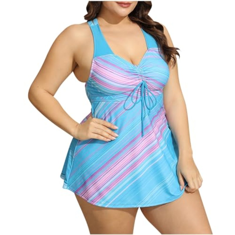 This plus size two-piece tankini swimsuit offers a combination of style and comfort with included boy shorts and tummy control features. Designed to provide coverage and a flattering fit, the tankini top is paired with flowy, full-coverage boy shorts that enhance comfort and support.