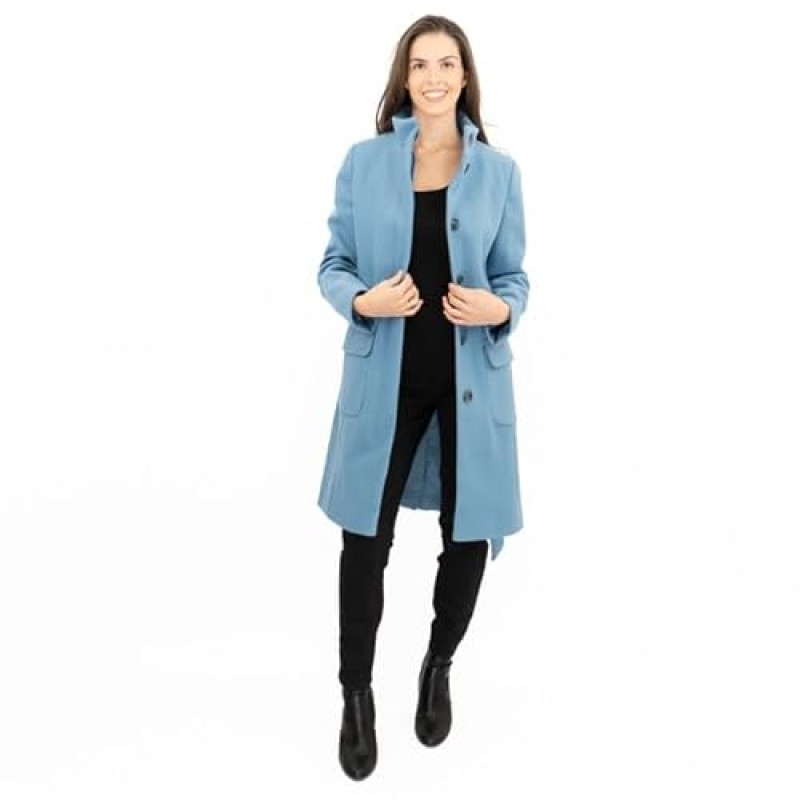 - Type: Women's overcoat with funnel neck and self-tie belt