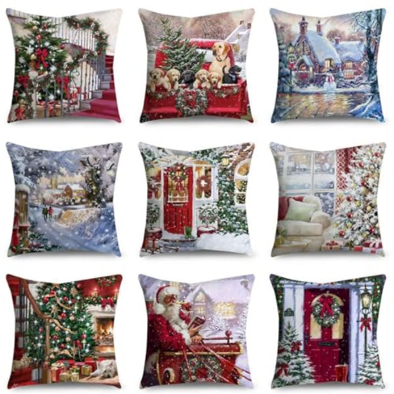 - Set of 5 Merry Christmas cushion covers