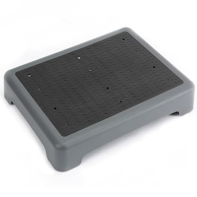 The StrongTek One Step Stool is designed to provide stability and support for individuals with limited mobility, helping to complete everyday tasks more safely. It features a durable plastic construction with a distinctive wavy non-slip surface that enhances grip and traction, while perforations allow water to drain away, reducing slipperiness. Its 3.4-inch step height makes it suitable for assisting with entryways, patios, or curbs, offering smooth and easy transitions.