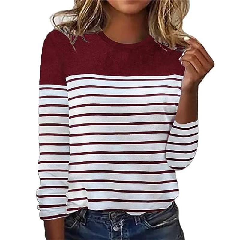 This long sleeve jumper for women is designed for autumn and winter wear, featuring a round neck and a stripe two-colour print. Manufactured with 85% polyester and 15% cotton, it offers a balance of softness, breathability, and warmth suitable for colder weather without bulk. The fit corresponds to typical sizing, ensuring a comfortable and body-fitting wear.