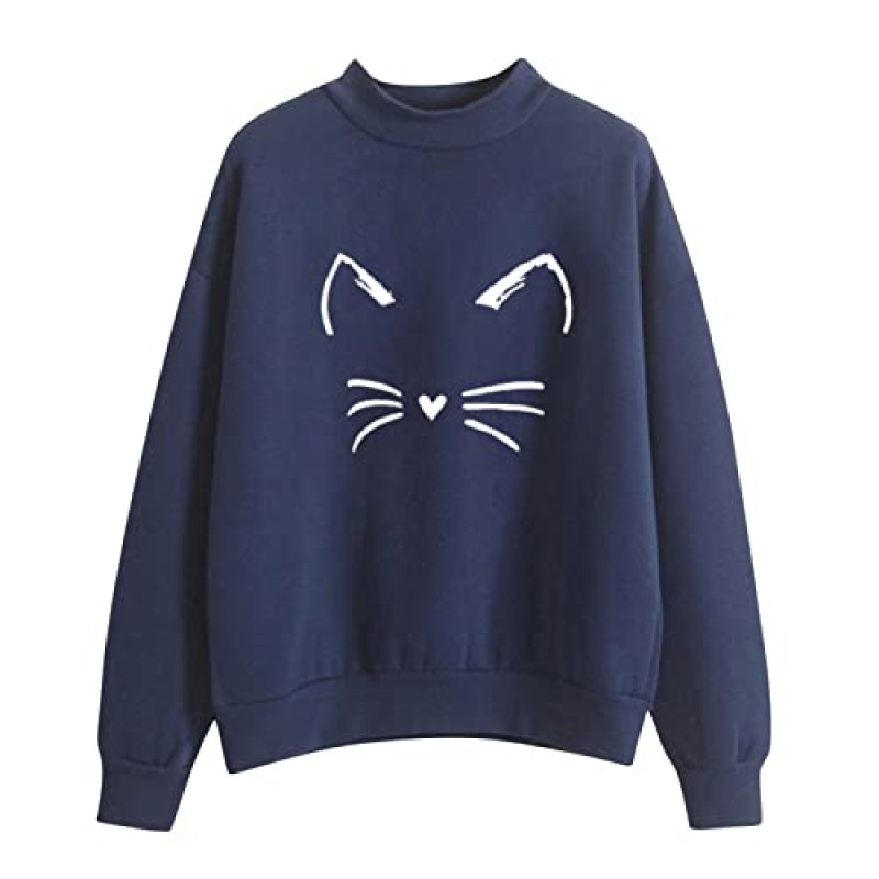UK Winter Sweatshirt for Women Autumn O Neck Long Sleeve Pullover Navy XXL