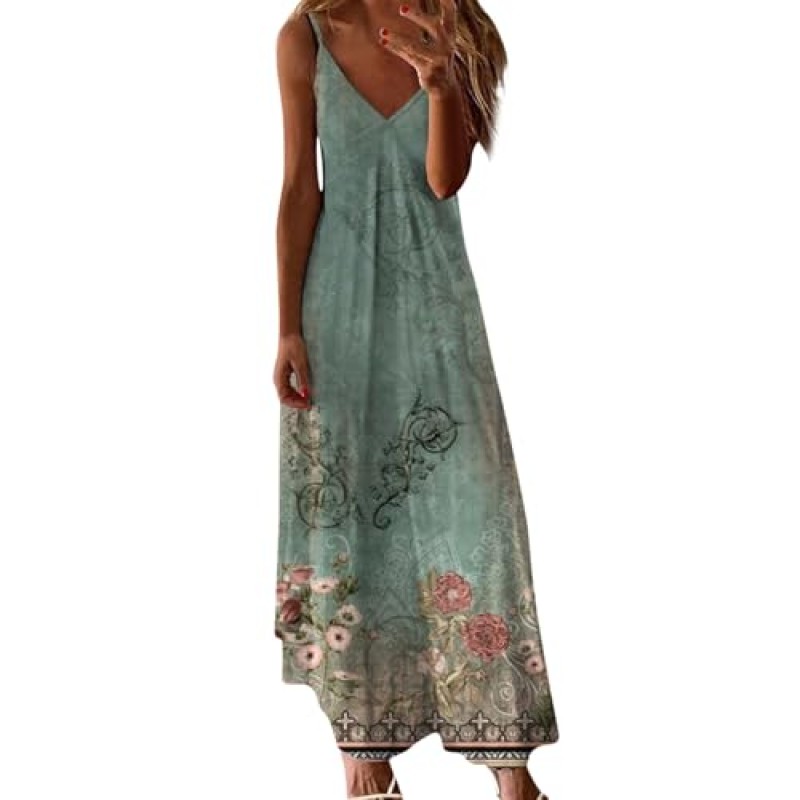 - Style: Women's boho floral print maxi dress with V-neck and strappy shoulder design