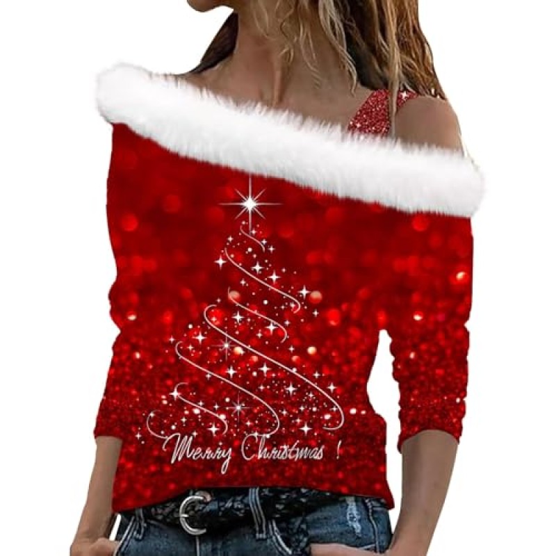 - Design: Casual one-shoulder style with long sleeves and Christmas print