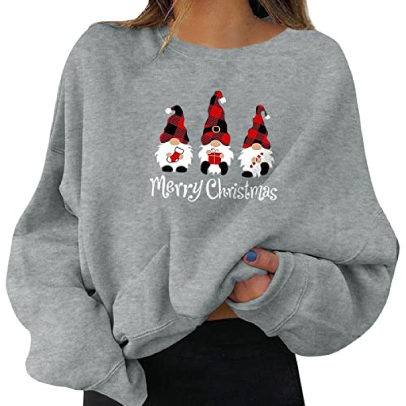 The sweatshirt fits true to size and contours to most women's body shapes, making it a versatile addition to a seasonal wardrobe. It is easily paired with jeans, leggings, or sweatpants for a casual and trendy look suitable for various occasions including daily wear, travel, office, outdoor activities, and festive events such as Christmas and New Year.