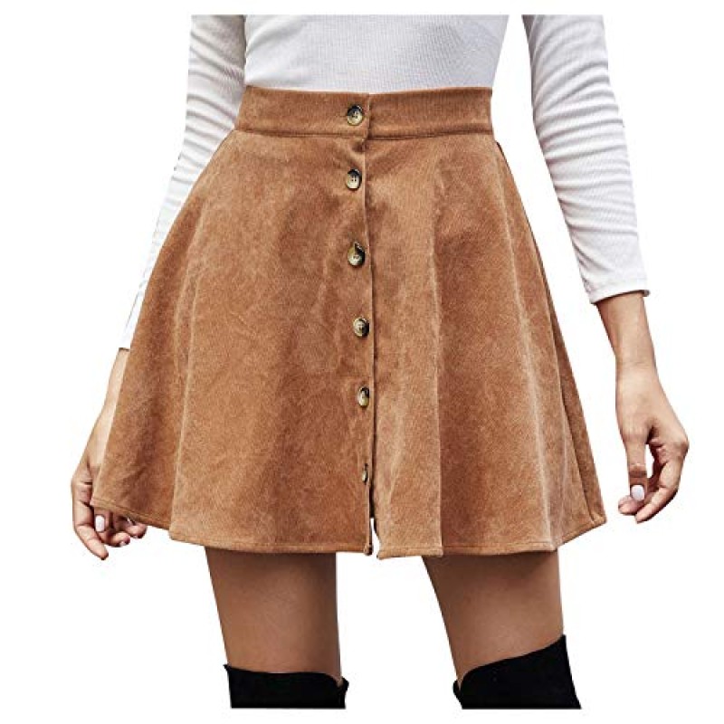 This women's skirt features a high waist and an A-line midi silhouette crafted from corduroy fabric, offering a soft and skin-friendly feel for comfortable wear. The elasticated waist provides flexibility and ease of movement, making it suitable for daily use. The design balances casual style with a flowing hemline that complements various outfits.