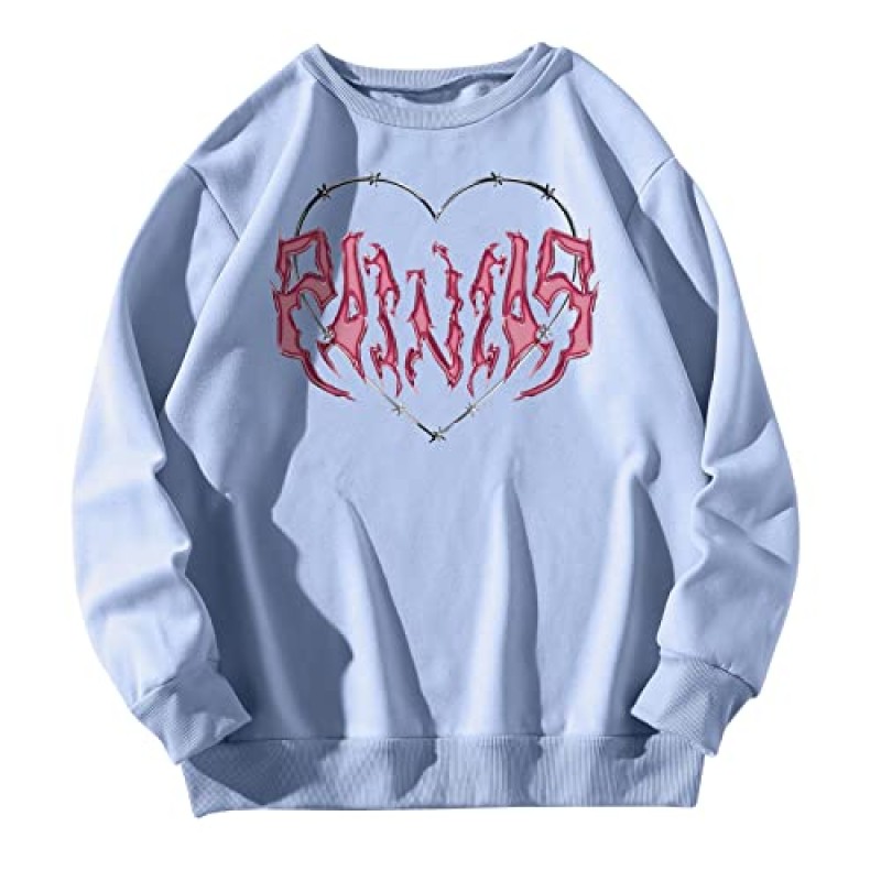 The jumper is decorated with a print pattern and an O-neckline, offering a simple yet functional design. Multiple sizes are available, ranging from S to XXL with detailed measurements for bust, sleeve length, and overall length to help find the right fit.
