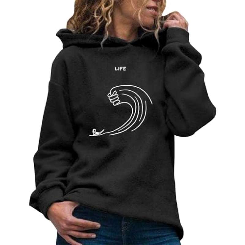 The pullover fits true to size and conforms to most body shapes, ensuring a comfortable fit. Its versatile design allows it to be paired easily with jeans, leggings, or sweatpants for casual or sporty looks. This hooded sweatshirt is practical for various occasions including daily wear, travel, office, and sports, as well as outdoor activities.