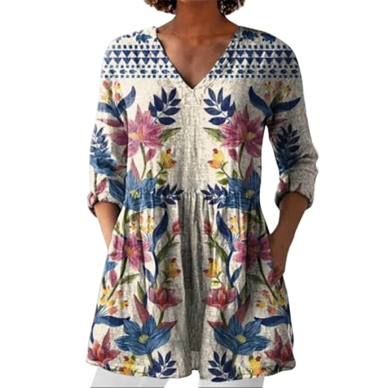 Available in a range of sizes, this tunic accommodates different body types, including plus sizes. The design is adaptable for various occasions, supporting layering or standalone use for warmer weather.