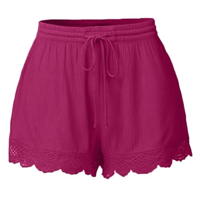 These women's summer shorts are made from cotton, offering breathability and comfort during warm weather. They feature an elastic drawstring waistband for an adjustable fit, enhancing ease of wear. Designed as casual shorts, they suit everyday use, including relaxed outdoor activities.