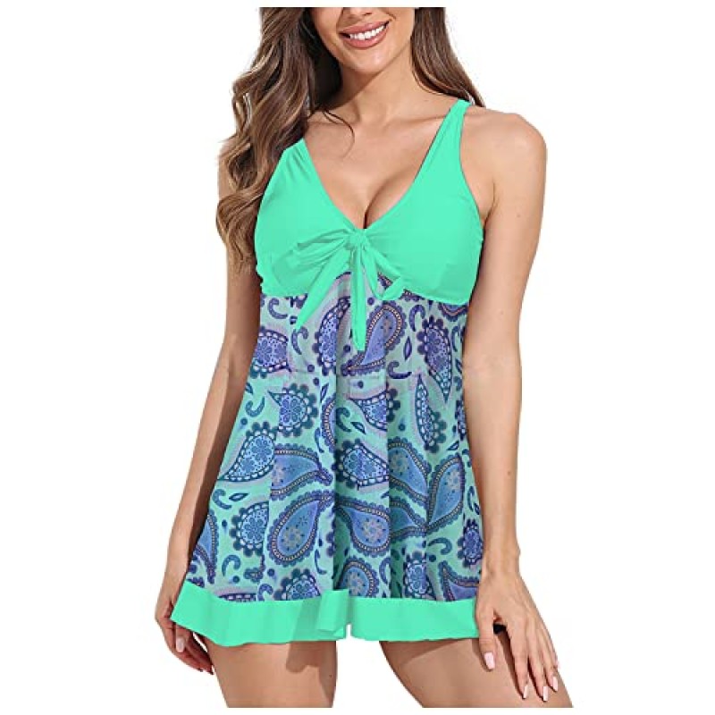 Women's Tankini Two-Piece Swimsuit with Flowy Tank Top and Boyshorts