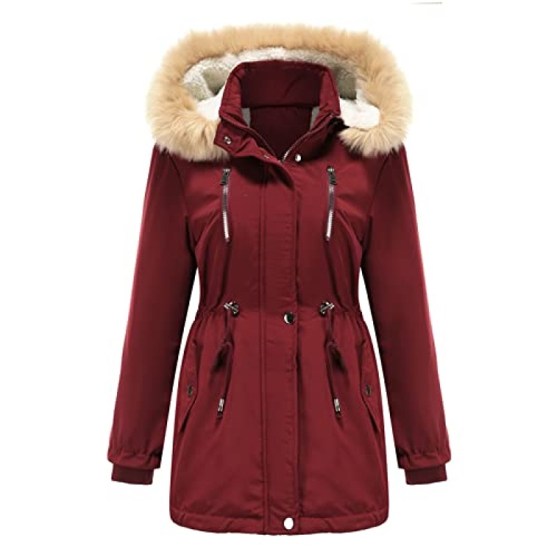 This women's parka coat combines waterproof functionality with a warm fleece lining to provide reliable protection in cold and wet weather. Designed with 100% polyester and 15% cotton, it features an ultra-warm Sherpa fleece lining that helps retain body heat and block cold winds effectively.